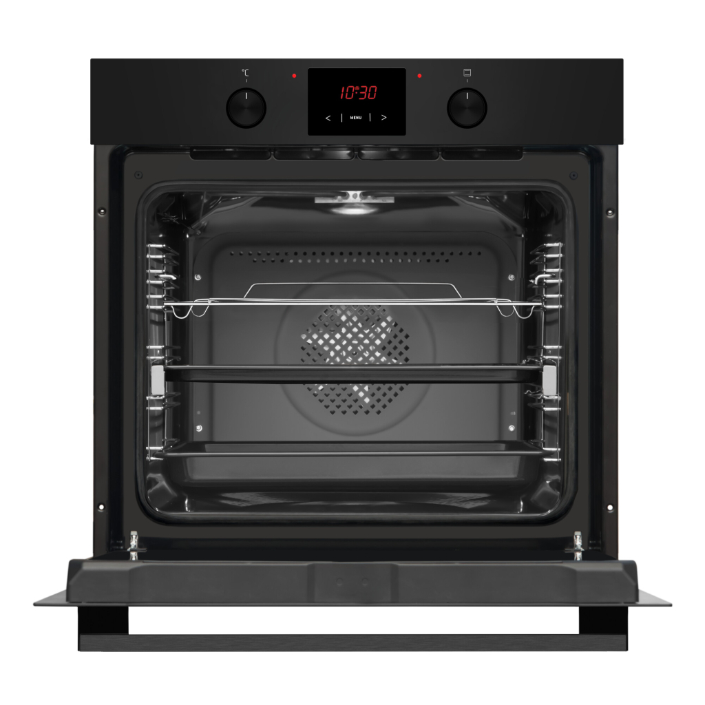 Hansa BOES68421 — це сучасна електрична духова шафа з об'ємом 77 літрів, яка поєднує стильний матовий чорний дизайн та передові функції для зручного приготування страв.
