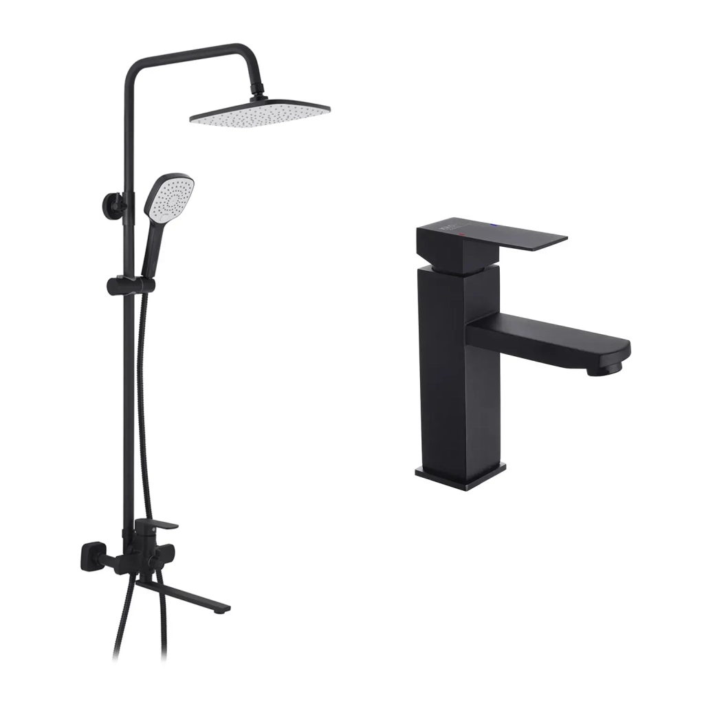 Цей набір 2 в 1 — зручне, стильне і функціональне рішення для оновлення ванної кімнати, де важливо поєднати душову систему та змішувач для умивальника у єдиному комплекті, без необхідності підбирати окремі компоненти.