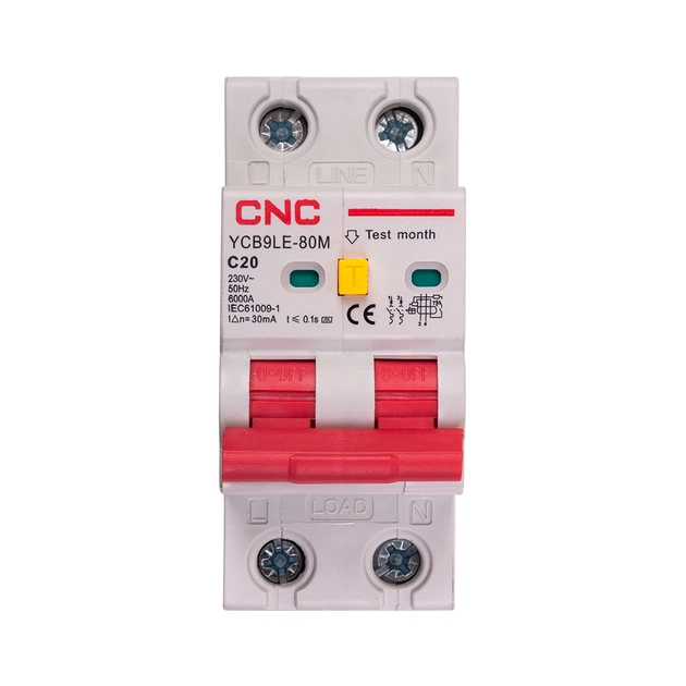 Диференціальний автоматичний вимикач CNC YCB9LE-80M 2P C20 6000A 30mA (NV821884)