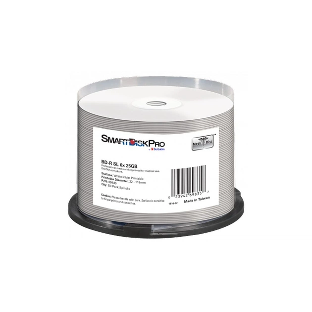 Диск BD SmartDisk PRO BD-R 25GB 6X White InkJet Printable WRAP(22-118 мм) 50шт (69835)