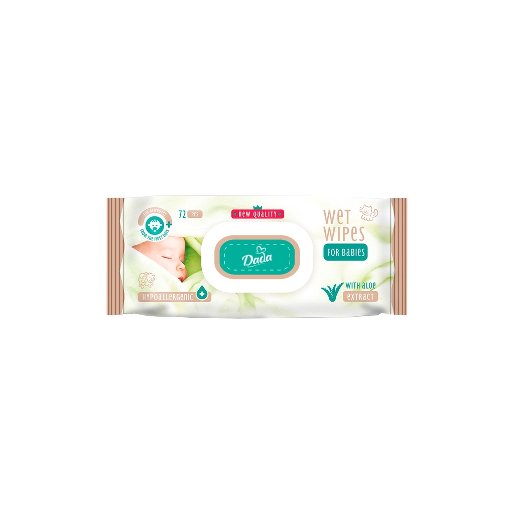 Дитячі вологі серветки Dada з екстрактом алое, з клапаном, 72 шт (4820174980405)