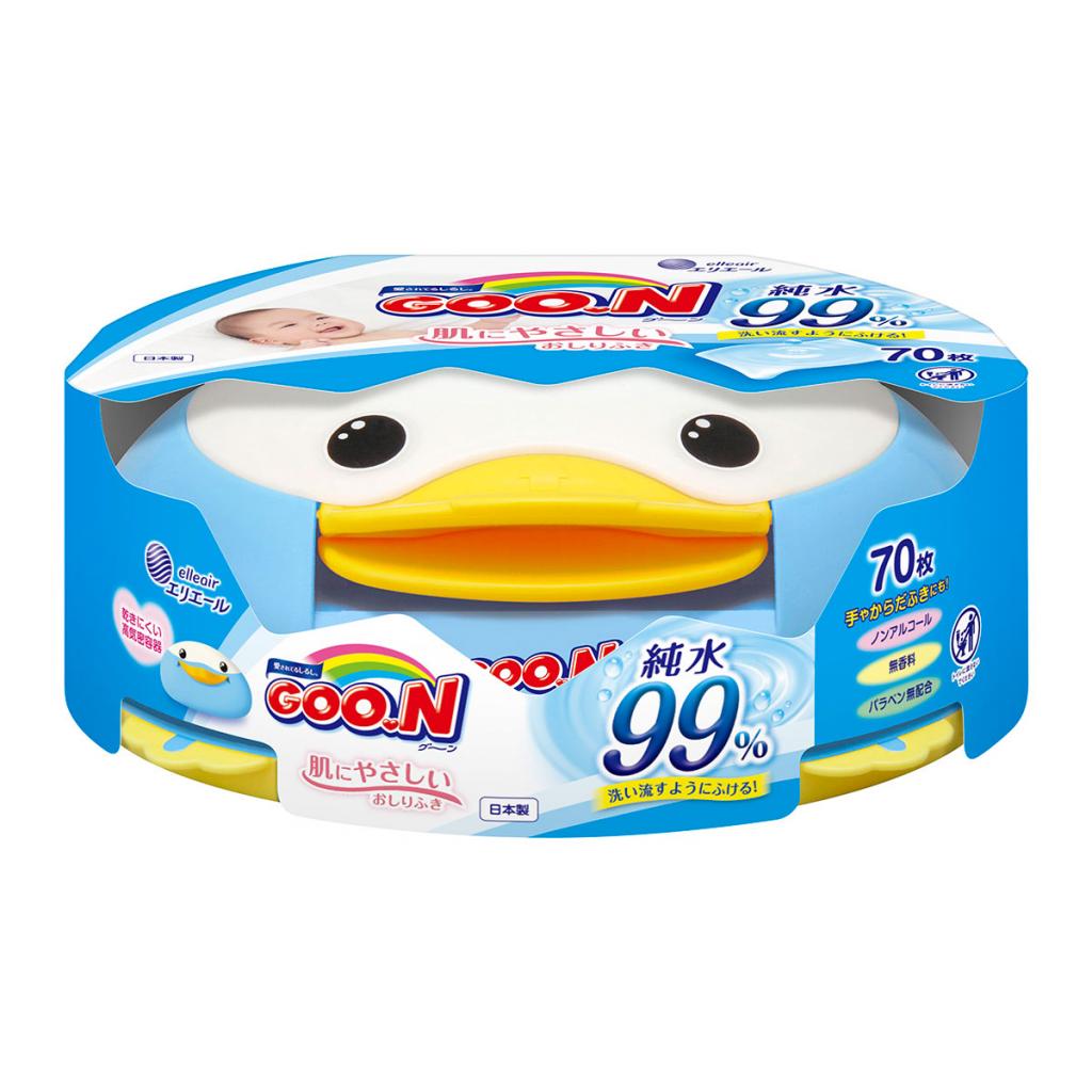 Вологі серветки GOO.N для чутливої шкіри пластиковий бокс-пінгвін, 70 шт - дбайливо і ніжно доглядають за чутливою шкірою малюка і мами. Забезпечують прекрасне очищення і відчуття, як після купання водою, завдяки спеціальній поверхні, яка утримує велику кількість вологи.