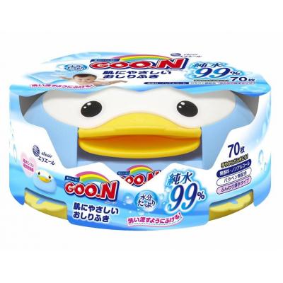 Вологі серветки GOO.N для чутливої шкіри пластиковий бокс-пінгвін, 70 шт – дбайливо і ніжно доглядають за чутливою шкірою малюка і мами. Забезпечують прекрасне очищення і відчуття, як після купання водою, завдяки спеціальній поверхні, яка утримує велику кількість вологи.