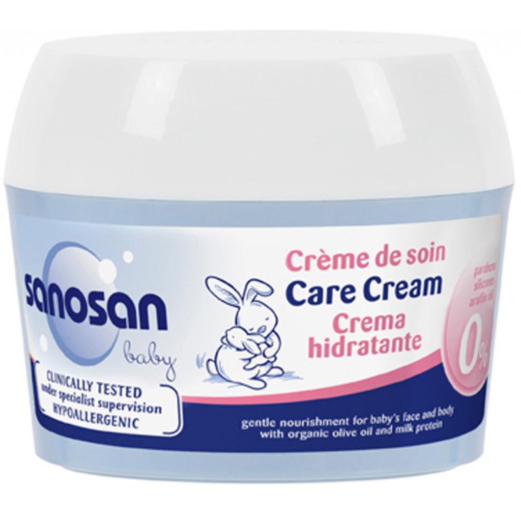 Дитячий крем Sanosan Baby Care зволожує й живить шкіру.