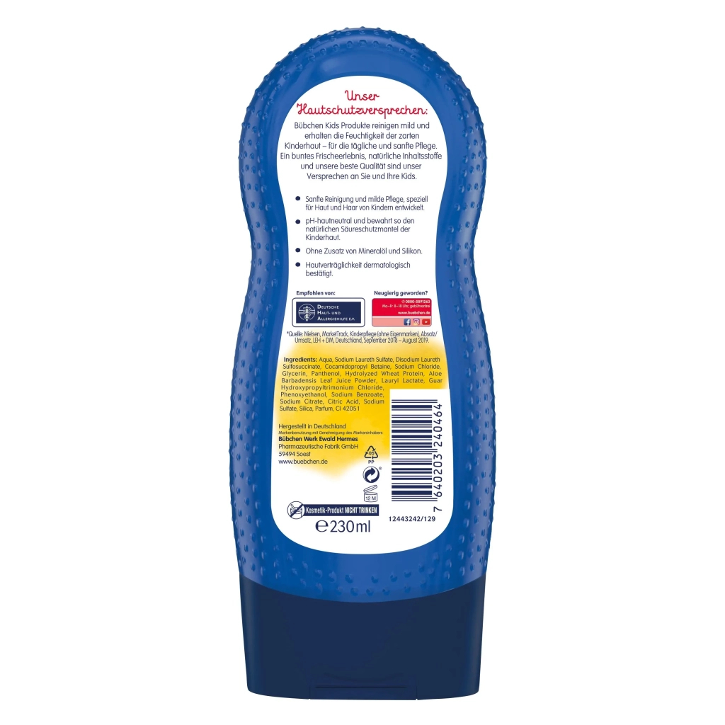 Шампунь та гель для душу Хоробрий пожежний 2 у 1 м'яко очищає. Він рН нейтральний для шкіри та зберігає природний захисний бар'єр ніжної дитячої шкіри. Для щоденного догляду за шкірою та волоссям. Без сплутаного волосся, без сліз.