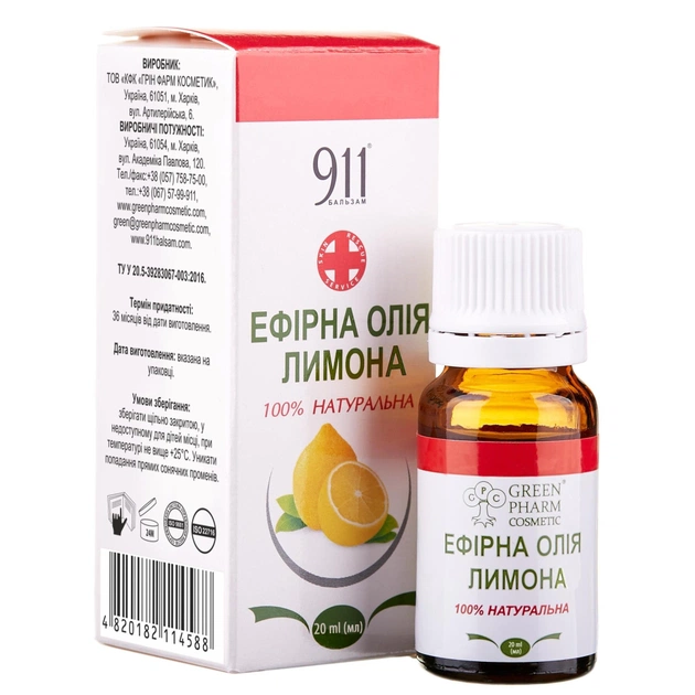 Ефірна олія ГРІН ФАРМ КОСМЕТИК Масло эфирное лимонное 20 мл (4820182114588)