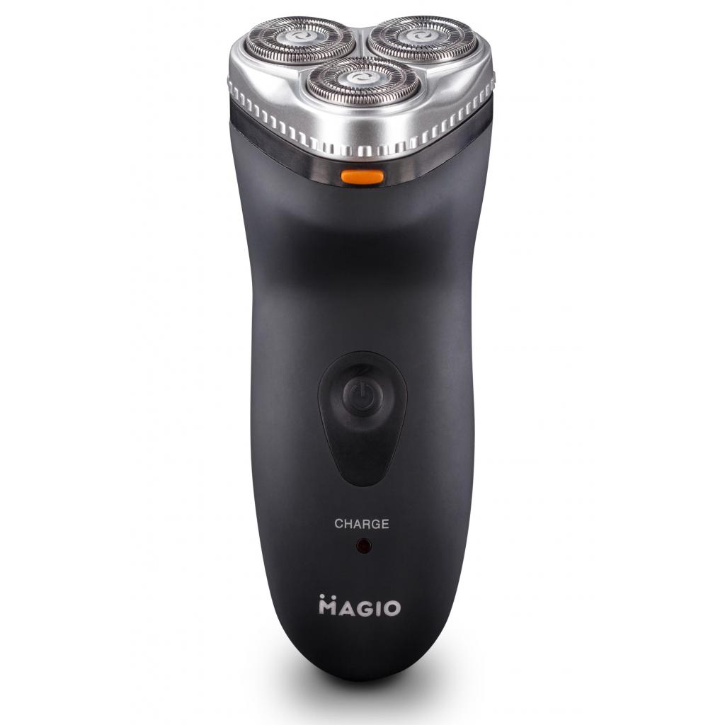 Акумуляторна електробритва MG-682 від компанії Magio, оснащена трьома вільно плаваючими голівками з подвійними лезами, і може пропрацювати близько півгодини в автономному режимі. Модель має висувний тріммер для підрівнювання скронь і систему "розумної" очищення під струменем води.