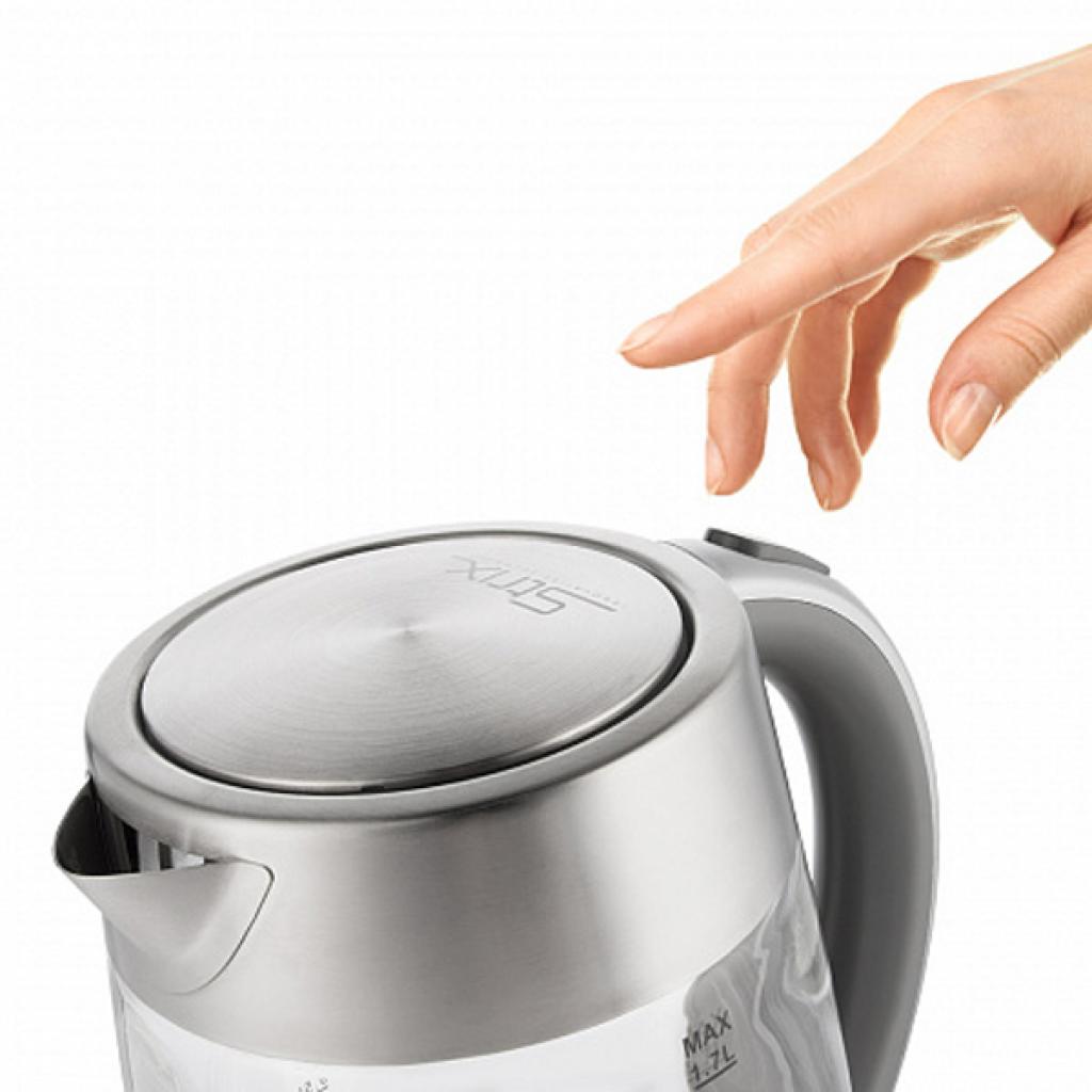 Кришка чайника відкривається при натисканні кнопки на ручці. Це є гарантією надзвичайно зручної роботи однією рукою при наповненні чайника водою.