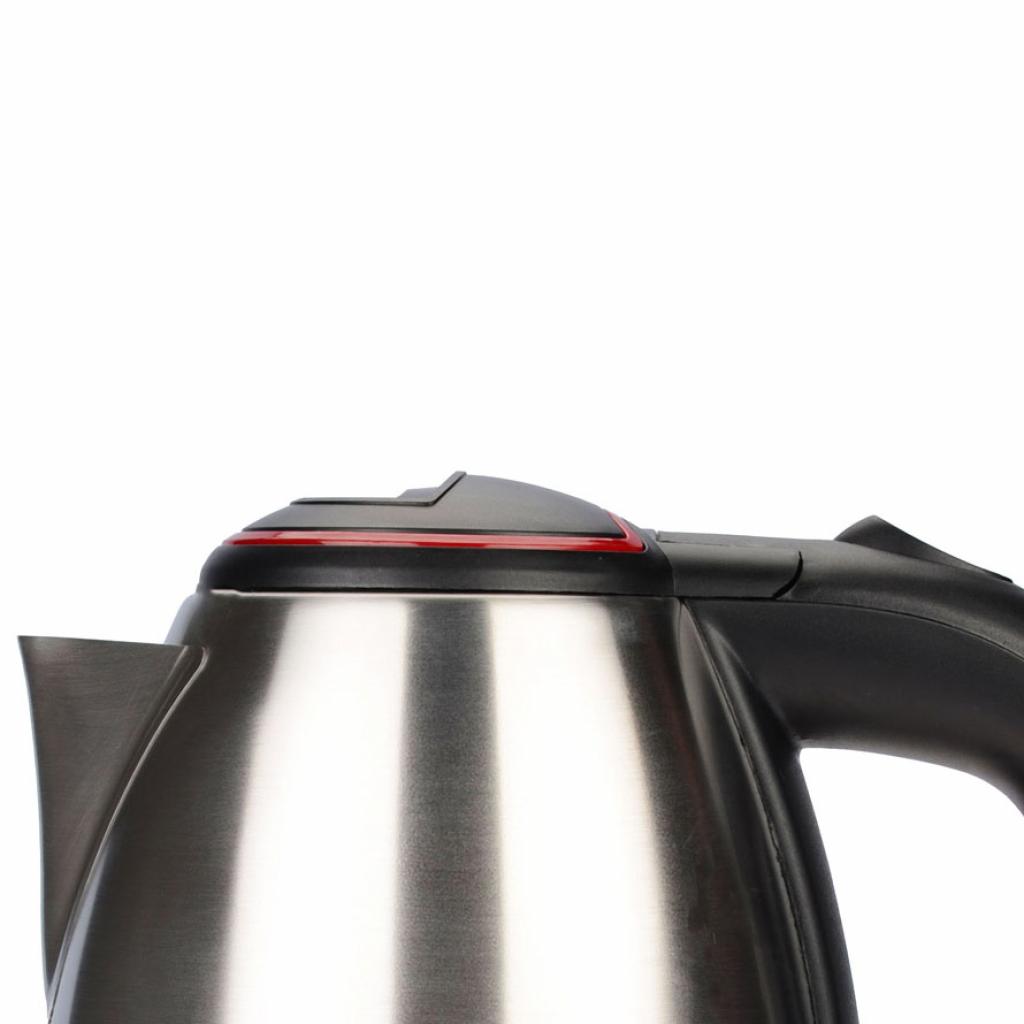 Електричний чайник виготовлений в металевому корпусі. Ручка, кришка і підстава приладу виконані з практичного пластику. Завдяки прихованому нагрівального елементу з нержавіючої сталі і потужності 1500 Вт чайник дозволяє кип'ятити воду за невеликий проміжок часу. Технологія автоматичного відключення при закипанні і система захисту від перегріву роблять чайник безпечним в побуті. Серед інших особливостей варто відзначити підставку з центральної контактної базою, світловий індикатор роботи, знімний фільтр від накипу.