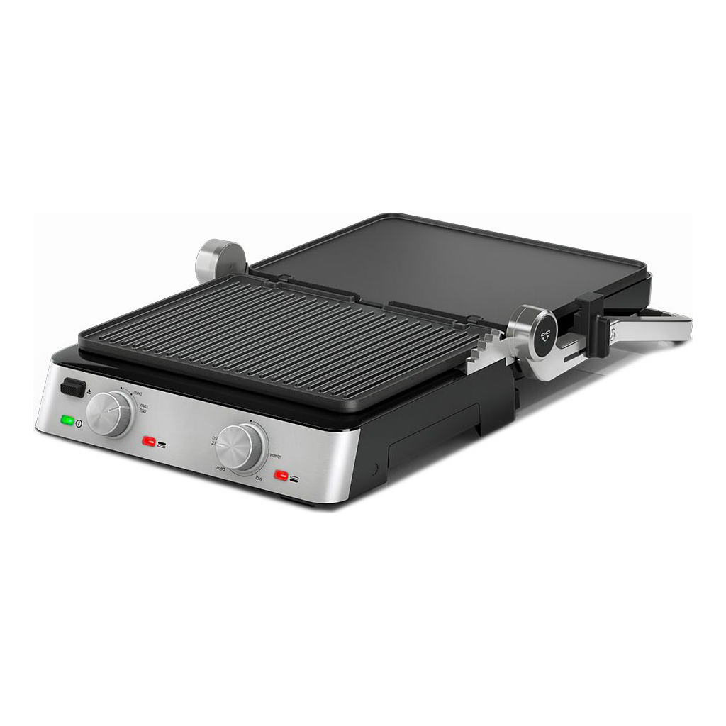 Хоча гриль один, він може готувати одночасно дві страви двома різними способами. Відрегулюйте температуру кожної пластини на свій розсуд, щоб отримати унікальний результат. Так, наприклад, можна сильно просмажити нижню половину гарячого бутерброда, лише розігрів верхню, щоб начинка, розташована на ній, не втратила початкових смакових якостей. Найточніша підтримка температури (60-230 град.) гарантує електроніка. Споживана потужність вбирається у 2000 Вт., що вважатимуться досить економічним показником.