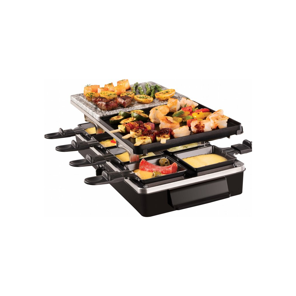 Універсальна гриль-раклетниця Russell Hobbs Multi Raclette 3 in 1 розрахована на компанію до 8 осіб і укомплектована різними змінними панелями: