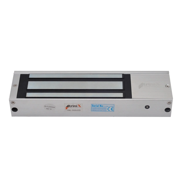 TML-500LED – це надійний електромагнітний замок зі світловою індикацією для монтажу усередині приміщень. Має максимальну силу утримання до 500 кг. Також має таймер затримки від 0 до 80 секунд. При необхідності може монтуватись з куточком для кріплення K-500L. Споживання струму становить 750 мА. Перевагою TML-500LED є відсутність рухомих деталей, що значно підвищує міцність і продовжує роботу пристрою.