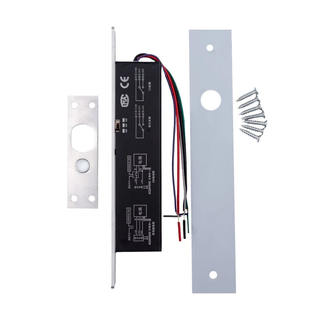 Тип роботи замку – нормально-відкритий (NO), коли ригель засувається за відсутності електричної напруги. Довжина ригеля – 15,5 мм. Матеріал виготовлення – сталь.