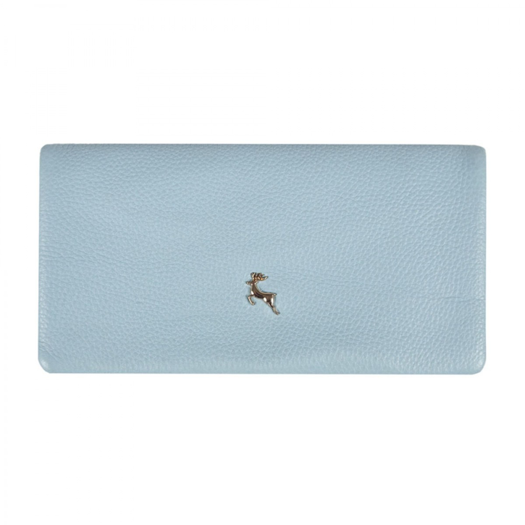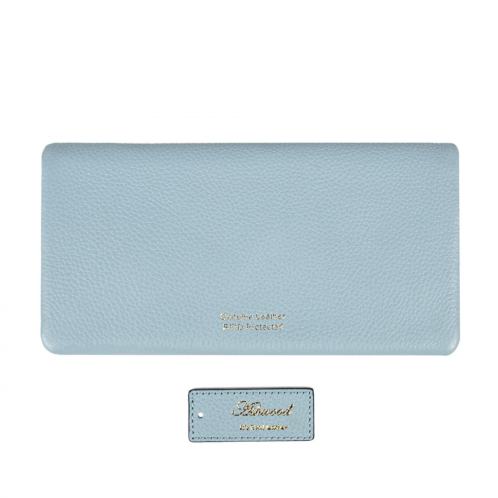 Жіночий гаманець Ashwood J56 виконаний з високоякісної матової телячої шкіри світло-блакитного кольору. Він включає одне відділення для купюр, містке відділення для монет на блискавці і дванадцять слотів для карт. Яскрава підкладка надає вишуканості. Розміри 19х9х2.5 см, представлений у подарунковій упаковці.