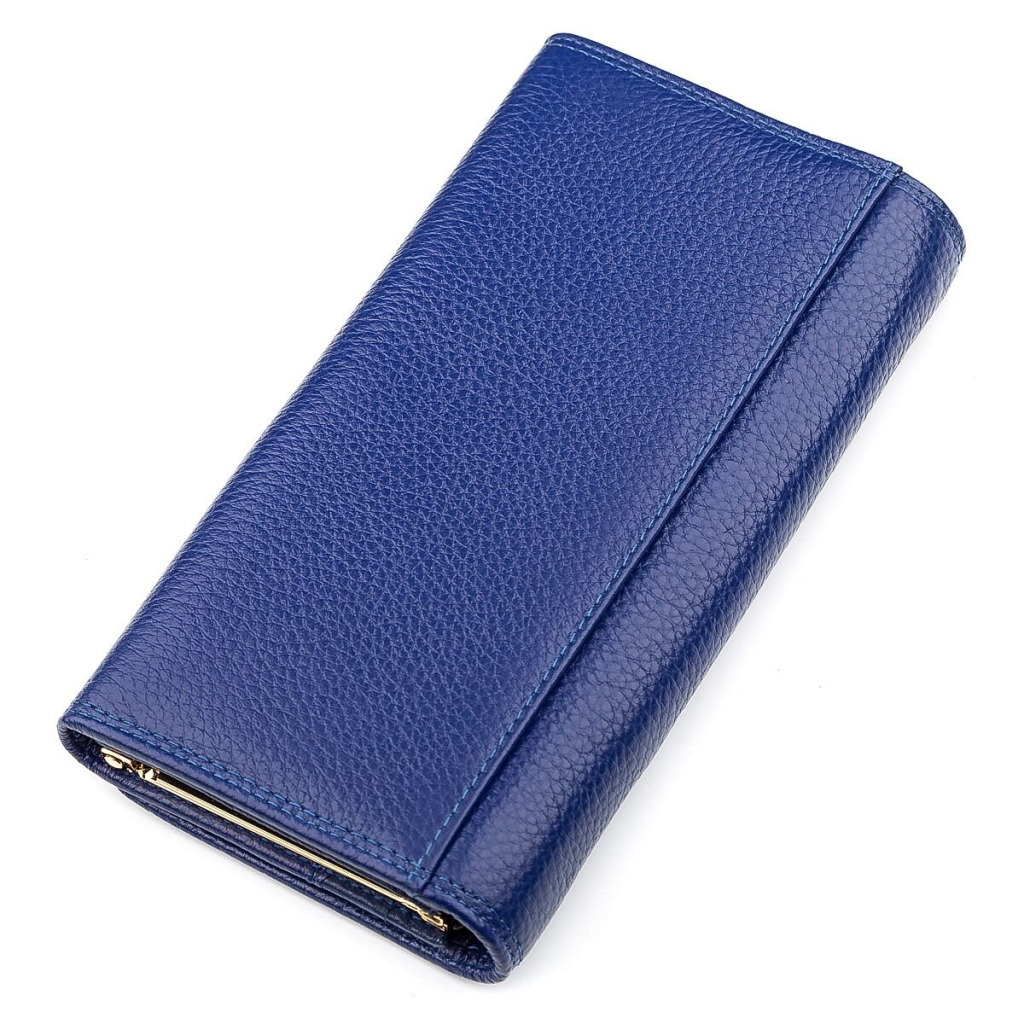 Жіночий гаманець Boston 18484 (S6001B) виконаний із натуральної шкіри синього кольору з зернистою текстурою. Його розміри складають 18,5 см у довжину, 9,5 см у висоту та 3 см у ширину.