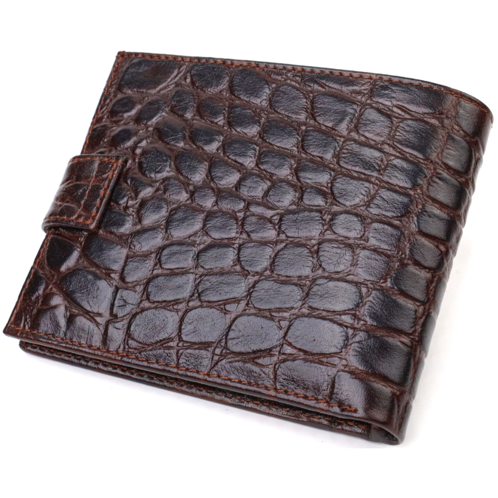 Цей чоловічий гаманець середнього розміру виготовлений з натуральної фактурної шкіри з тисненням під крокодила.