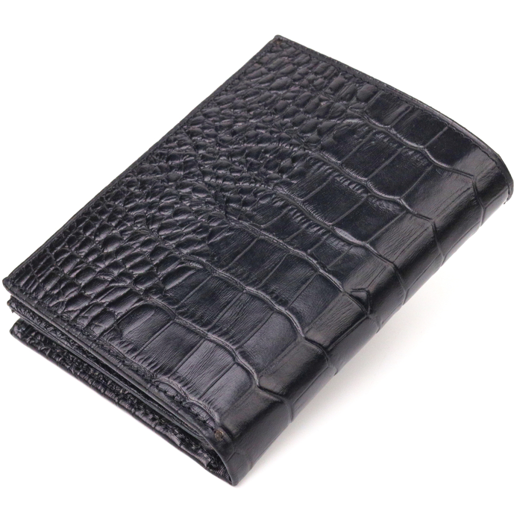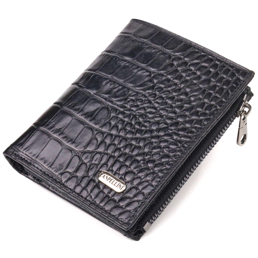 Гаманець Canpellini З натуральної шкіри з тисненням під крокодила Чорний (21673)
