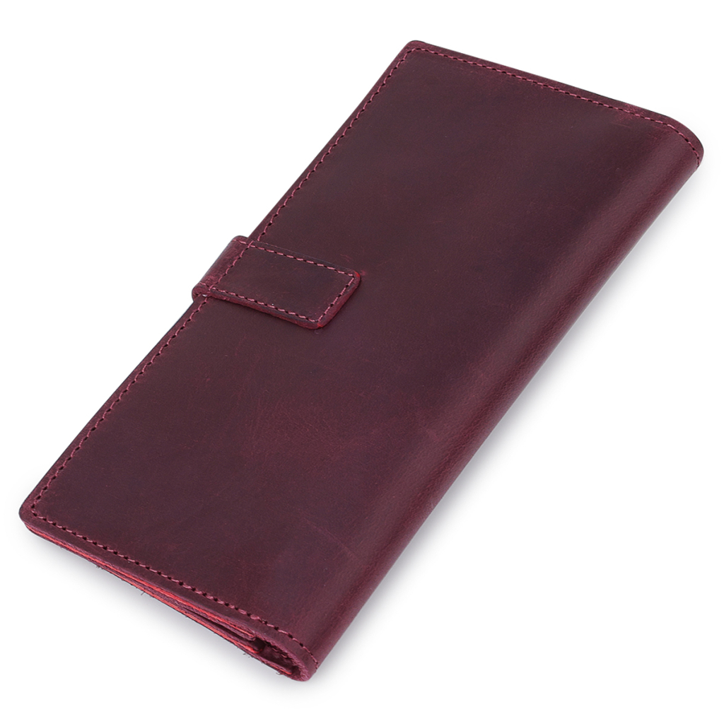 Матеріал: натуральна шкіра. Колір: бордовий. Розміри (ШхВхГ, см): 9х18х1 см. Країна виробник: Україна. Бренд: GRANDE PELLE. Опис: - закривається на кнопку; - всередині 4 відділення на всю довжину; - монетниця на блискавці; - 7 кишень для карток Красиве матове жіноче портмоне в бордовому кольорі з відтінком стиглої вишні. Виготовлений виріб з натуральної шкіри з високими показниками міцності. Закривається аксесуар на зручну практичну кнопку. Усередині розташувалися відділення на всю довжину для купюр, монетниця на блискавці і слоти для кредитних карт або візиток. Упаковано портмоне в фірмову картонну коробку.