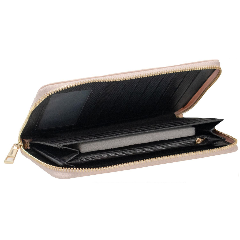 Виконаний з якісного синтетичного матеріалу з текстурою saffiano, він має характерну хрестоподібну фактуру, яка не лише виглядає естетично, а й забезпечує підвищену стійкість до подряпин і зношування. Гаманець закривається на міцну блискавку по периметру, що гарантує надійність і безпеку зберігання вмісту.