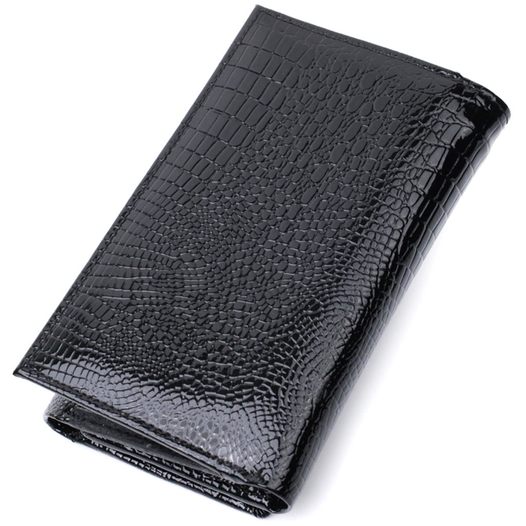 Горизонтальний жіночий гаманець середнього розміру з натуральної шкіри високої якості із тисненням під рептилію.
