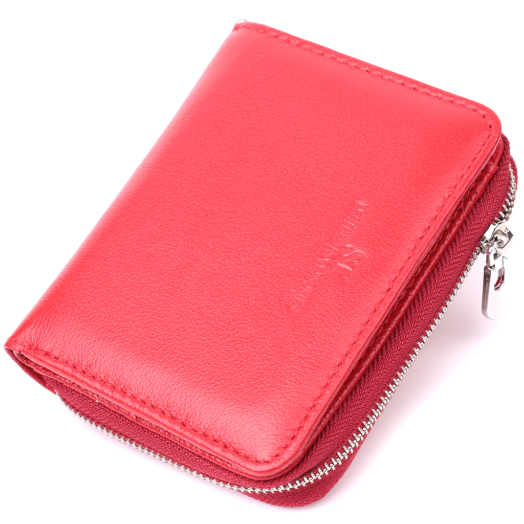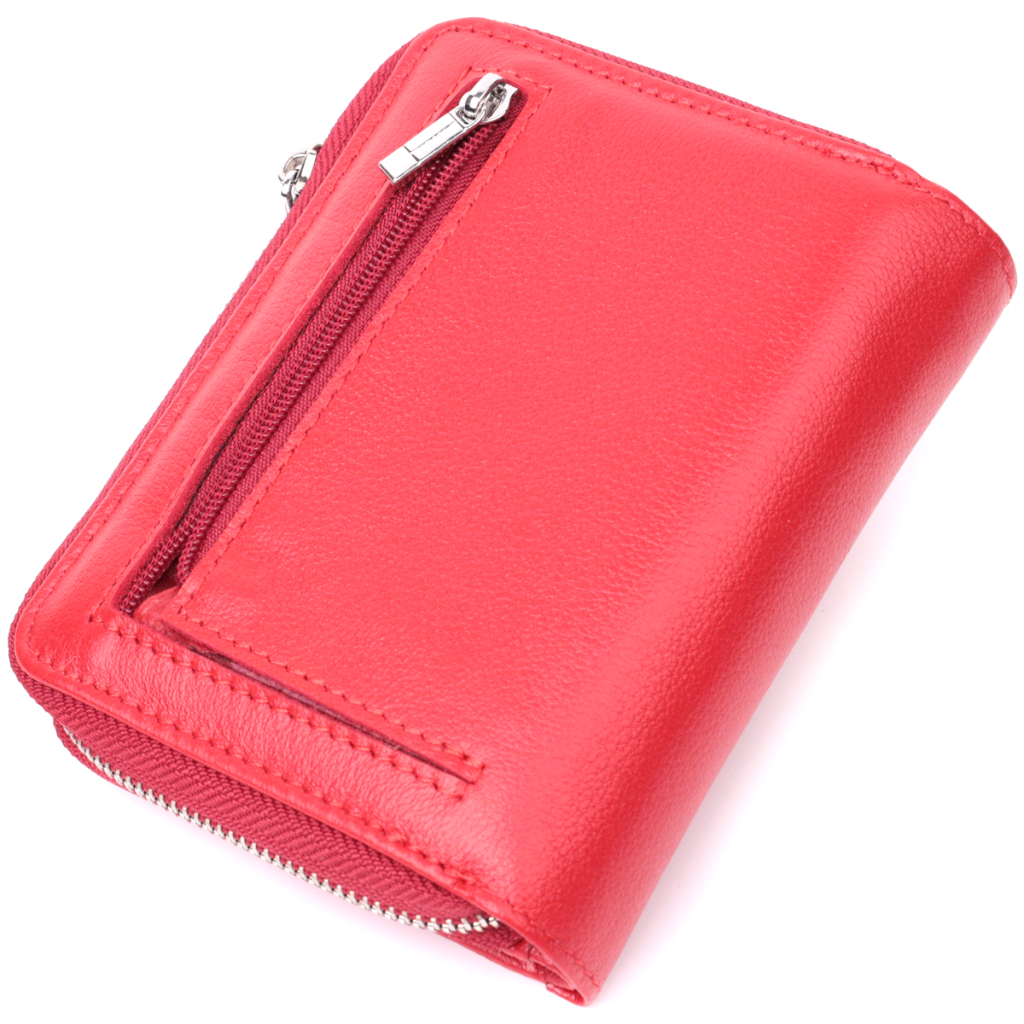 Жіноче портмоне червоного кольору, середнього розміру, що закривається навпіл на блискавку.