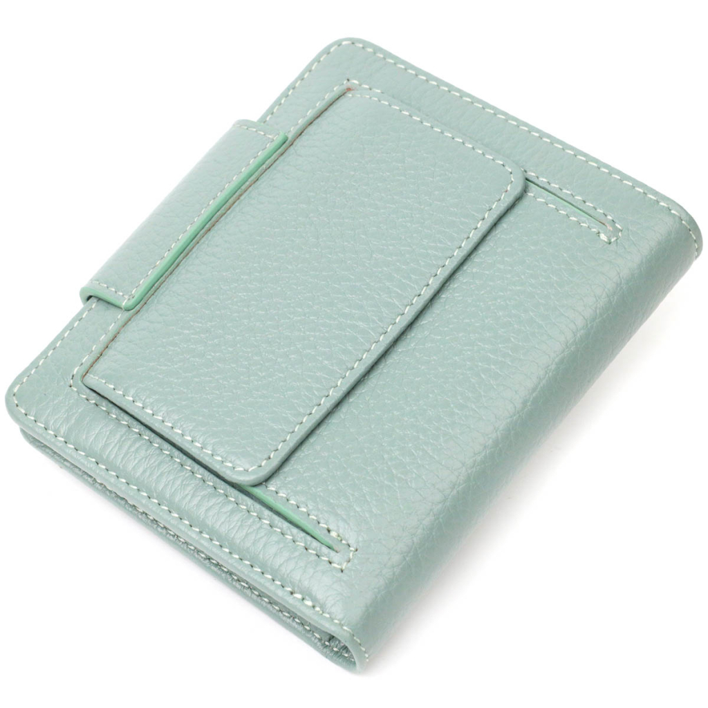 Зручний місткий жіночий гаманець із натуральної шкіри. Аксесуар складається з двох широких відділень для купюр, дев'яти осередків для пластикових карток, двох прилеглих кишень, кишені під сіточкою та монетниці під клапаном зовні. У виробі використано якісну фурнітуру золотистого кольору. Закривається гаманець шкіряним хлястиком на кнопку. Купуючи цей шкіряний гаманець, Ви не тільки набуваєте стильну річ, але й отримуєте якісний аксесуар, який прослужить не один рік.