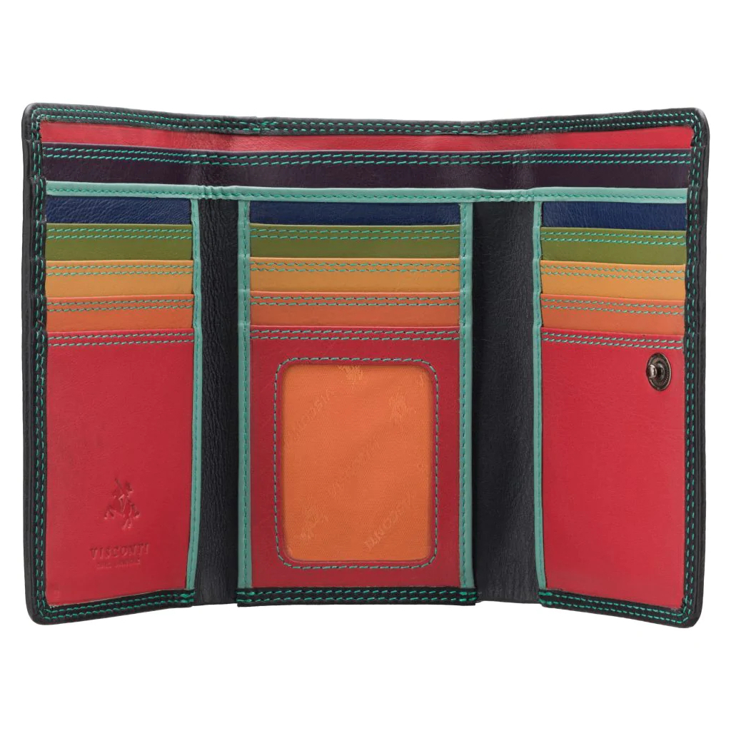 Має 11 слотів під картки (одне прозоре віконце). Для купюр — два відділення з брендовою підкладкою Visconti, що дозволяє розподілити гроші по відділах.