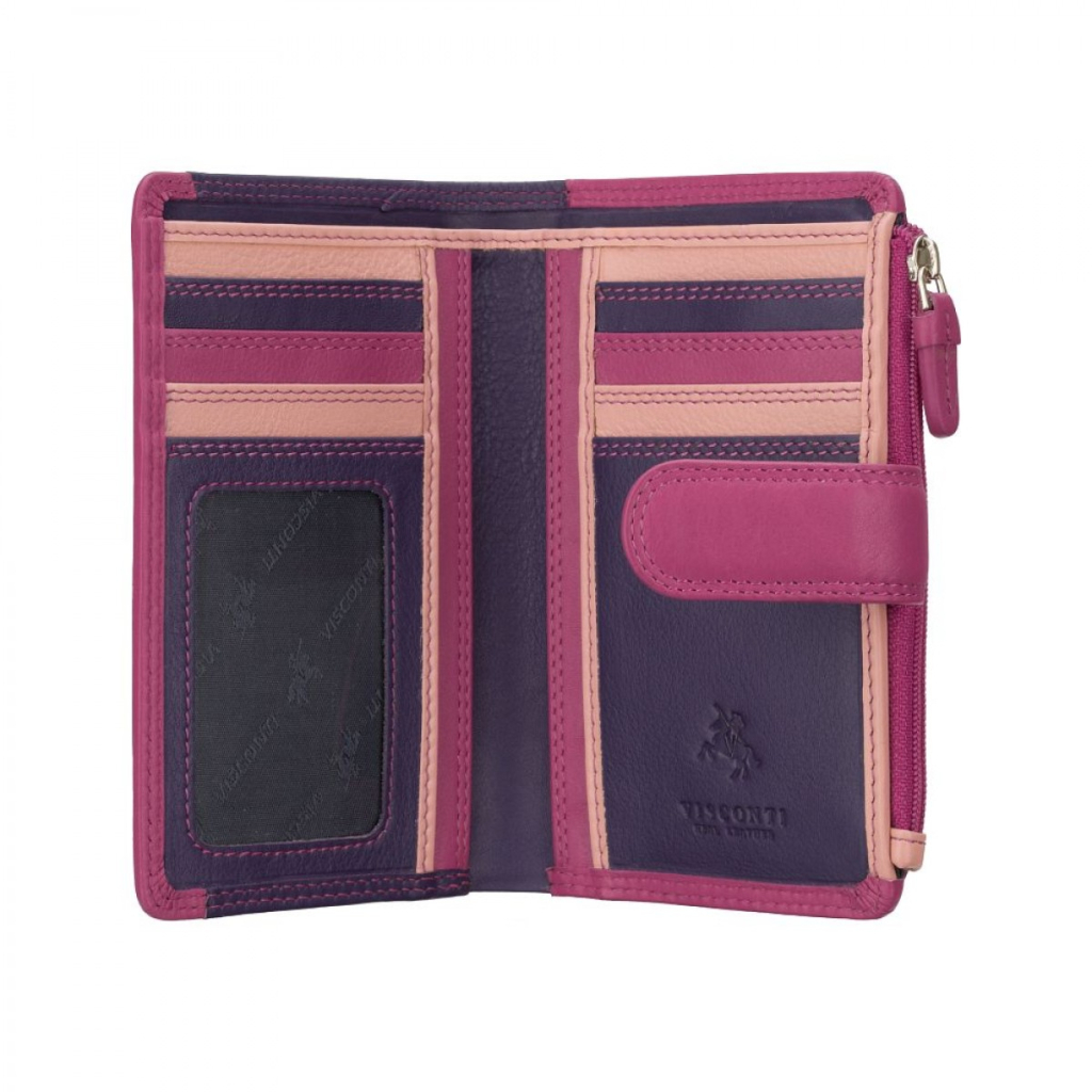 Жіночий гаманець із телячої шкіри. Відмінна особливість гаманця Visconti RB97 Cayman, як і всієї колекції - яскраве забарвлення з трьох основних відтінків: сливового, червоного та рожевого.