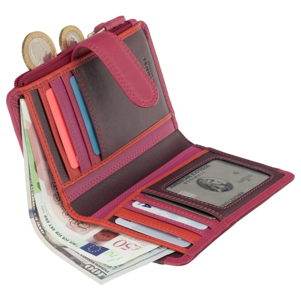 Жіночий гаманець із телячої шкіри. Відмінна особливість гаманця Visconti RB97 Cayman, як і всієї колекції - яскраве забарвлення з трьох основних відтінків: сливового, червоного та рожевого.