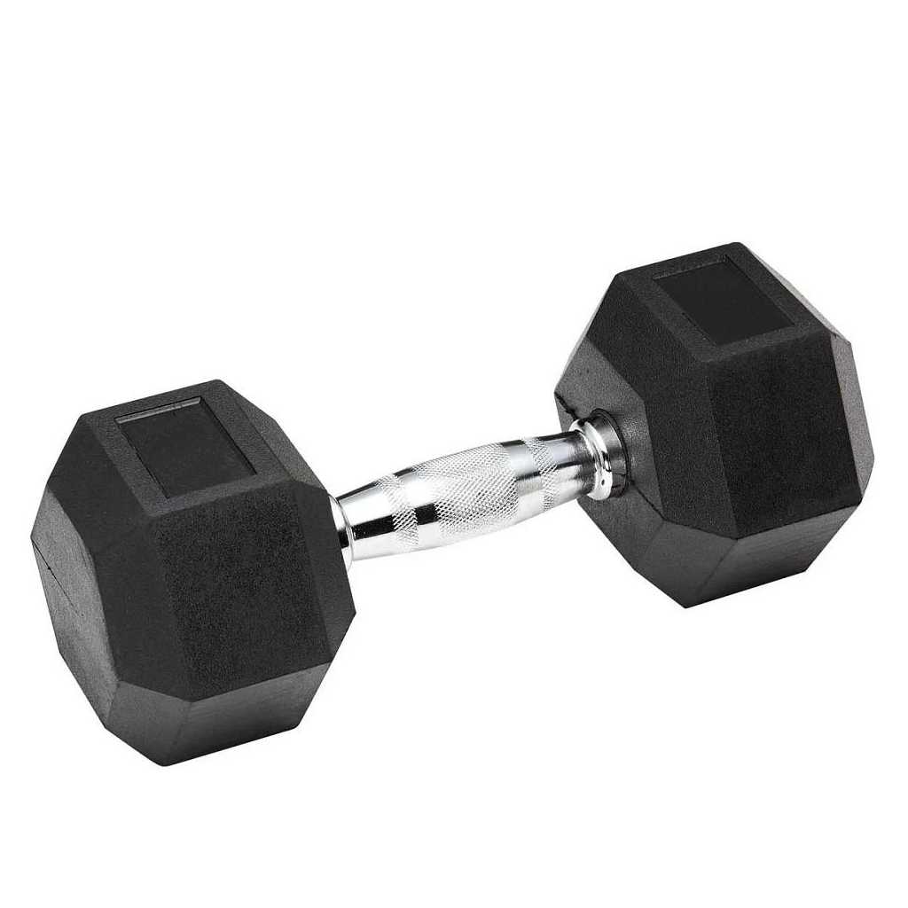 Шестигранні прогумовані гантелі мають обгумовані диски, які мінімізують звук, а також пошкодження обладнання та підлоги.