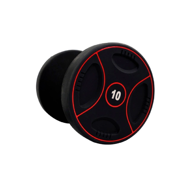 Має універсальне використання під час тренувань. Завдяки гумовому покриттю вона дуже міцна, а її форма запобігає небажаним ушкодженням. Вона виготовлена з високоякісної сталі та заліза, а завдяки засічкам в області ручки їй буде складно вислизнути з вашої руки. Доступна у кількох вагових варіантах. Основні характеристики, що визначають ці гантелі: максимальна стабільність та довговічність.
