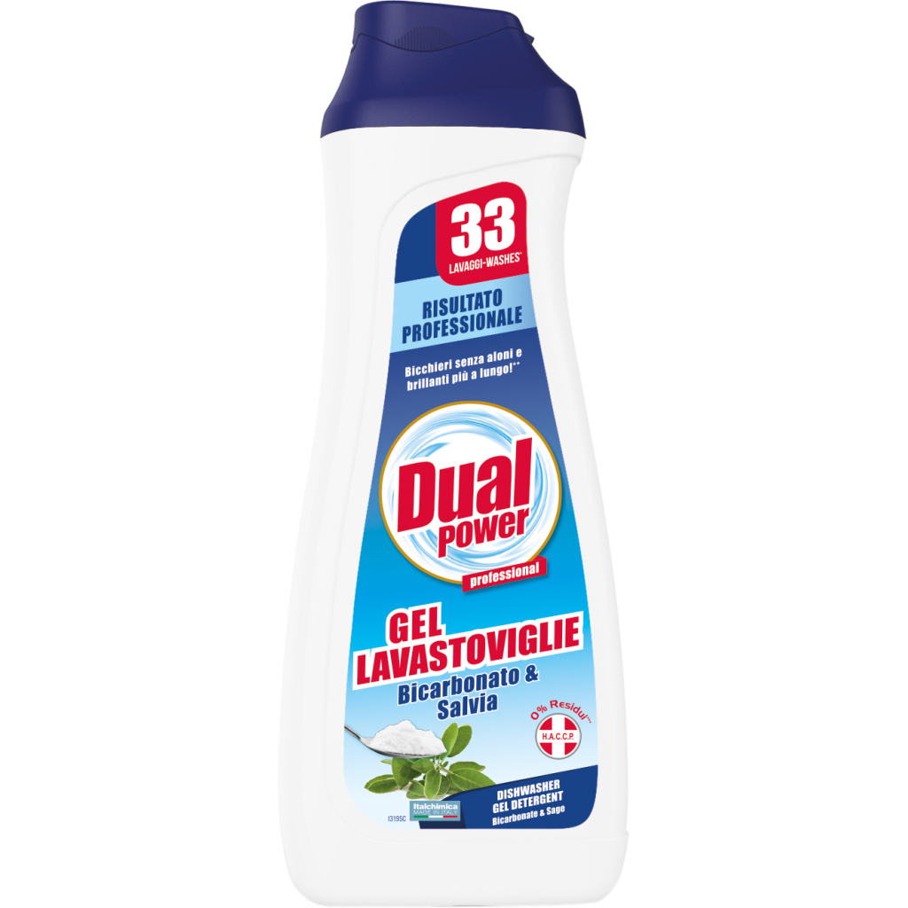 Супер гель для миття посуду в посудомийних машинах Dual Power Все в 1 — видаляє жир, надає посуду блиску, захищає посудомийну машину від накипу.