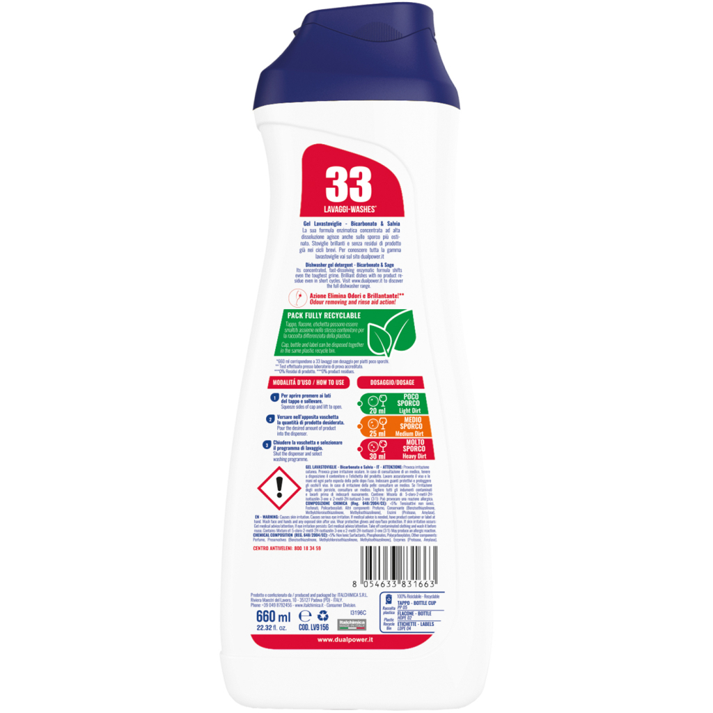 Гель для миття посуду в посудомийці Dual Power Все в 1 660 мл (8054633831663)