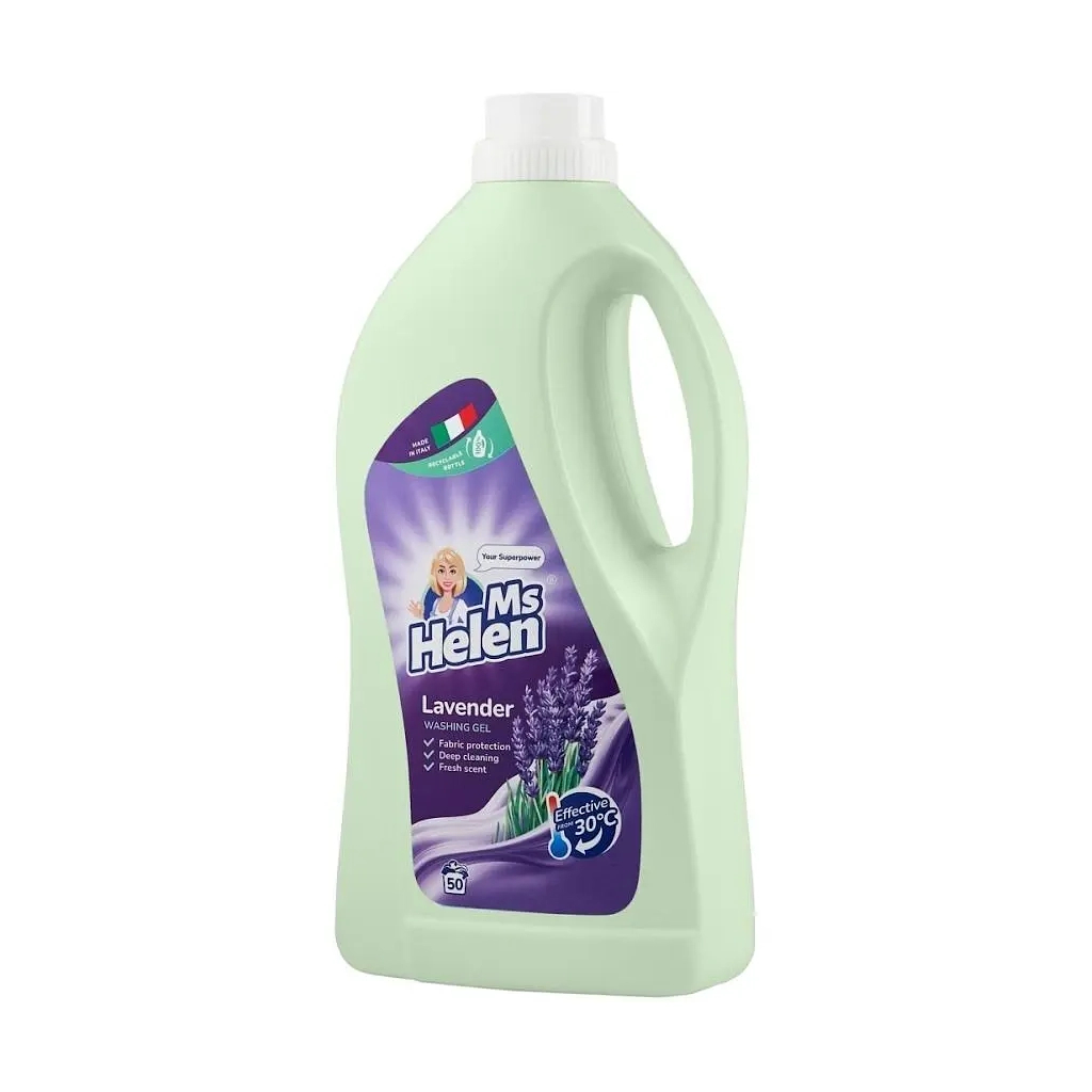 Засіб розрахований на 50 циклів прання, що робить його економічним вибором для великої родини. Досягніть бажаного результату без зайвих зусиль: насолоджуйтесь чистотою без компромісів щодо якості та тривалості використання. За допомогою Ms Helen, ваші улюблені речі завжди виглядатимуть прекрасно, а приємний аромат лаванди додасть їм ще більше привабливості.