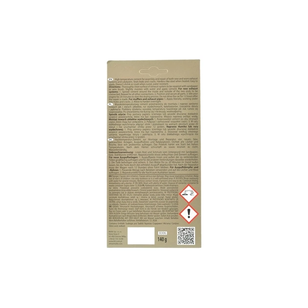 ВластивостіВисокоадгезійний склад успішно герметизує пошкодження резонаторів, глушників, каталізаторів та вихлопних труб. Має високий рівень термостійкості: допустима температура експлуатації досягає +816 °С. Утворений на місці застосування шов має вогнетривкі характеристики. Герметик Bond Mefix B306 також підходить для ремонту камінів, печей та нагрівальних елементів з кераміки.