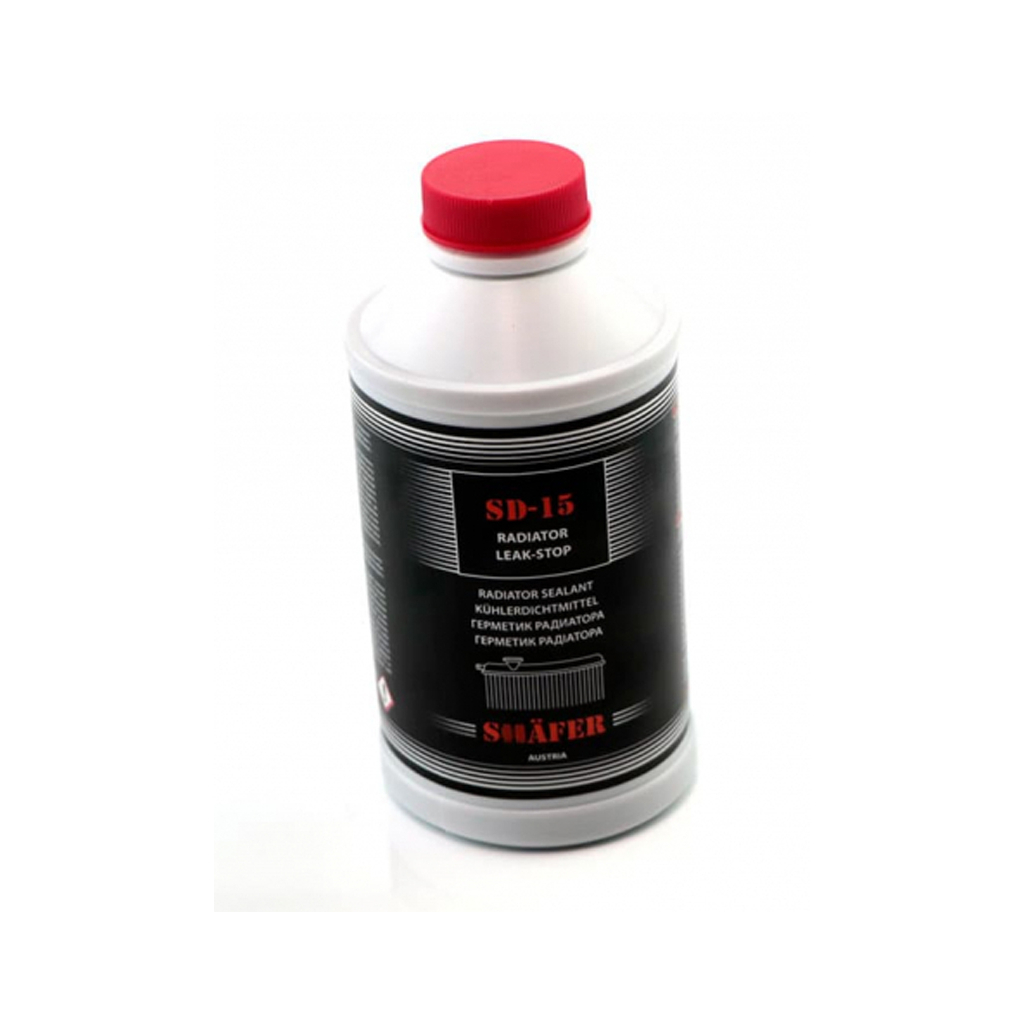 SHAFER SD15 - Спеціальна присадка в охолоджувальну рідину – герметик системи охолодження двигунів внутрішнього згоряння (ДВЗ) та системи опалення салону. Підходить для будь-яких ДВЗ з рідинним охолодженням, з радіаторами з будь-яких матеріалів (алюмінієвих, мідних, пластикових та композитних тощо). Є сумішшю металполімерів і спеціальних волокон і призначений для усунення протікань в системі.
