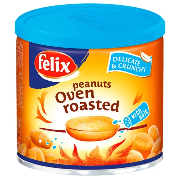 Якщо ви любите арахіс і шукаєте здоровий солоний перекус, то ви потрапили в потрібне місце! Фелікс, використовуючи інноваційний метод подвійного обсмажування без додавання олії, створив новий, делікатний і приємно хрусткий солоний арахіс із печі, не бруднить руки! Ви зможете насолоджуватися горішками в будь-яких ситуаціях і забути про брудні та жирні руки. Отримали хрустку інновацію, час уже спробувати солоний арахіс із печі!