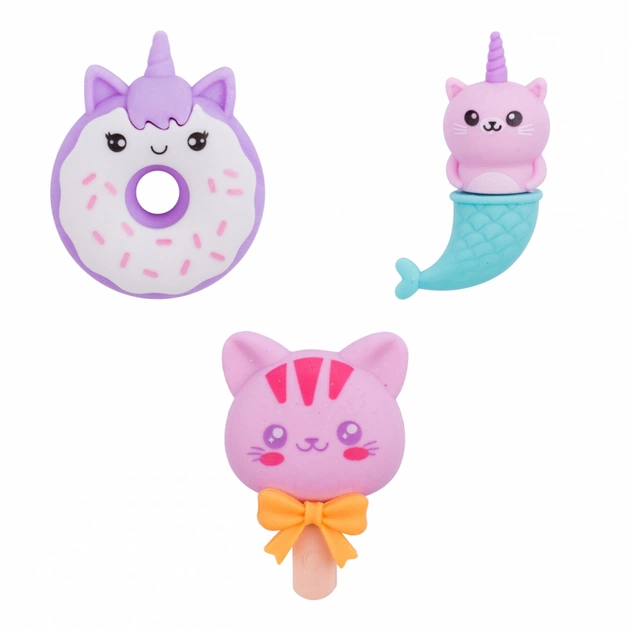 Розбірні няшні фігурки - гумка-puzzle з легким запахом кавуна в подарунковій упаковці. Призначена для ефективного видалення на різних видах паперу слідів графітних і кольорових олівців. Матеріал гумки - термопластичний каучук не пошкоджує папір при стиранні. Упаковка: 3 шт. в картонній коробці.