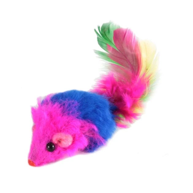 Іграшка для котів "FOX" Миша з брязкальцем та пером синьо-червона (5901436129264)