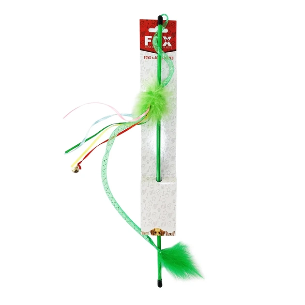 Іграшка для котів "FOX" Вудка-дражнилка "Хвіст дракона з пухом та стрічками" (6912102124635)