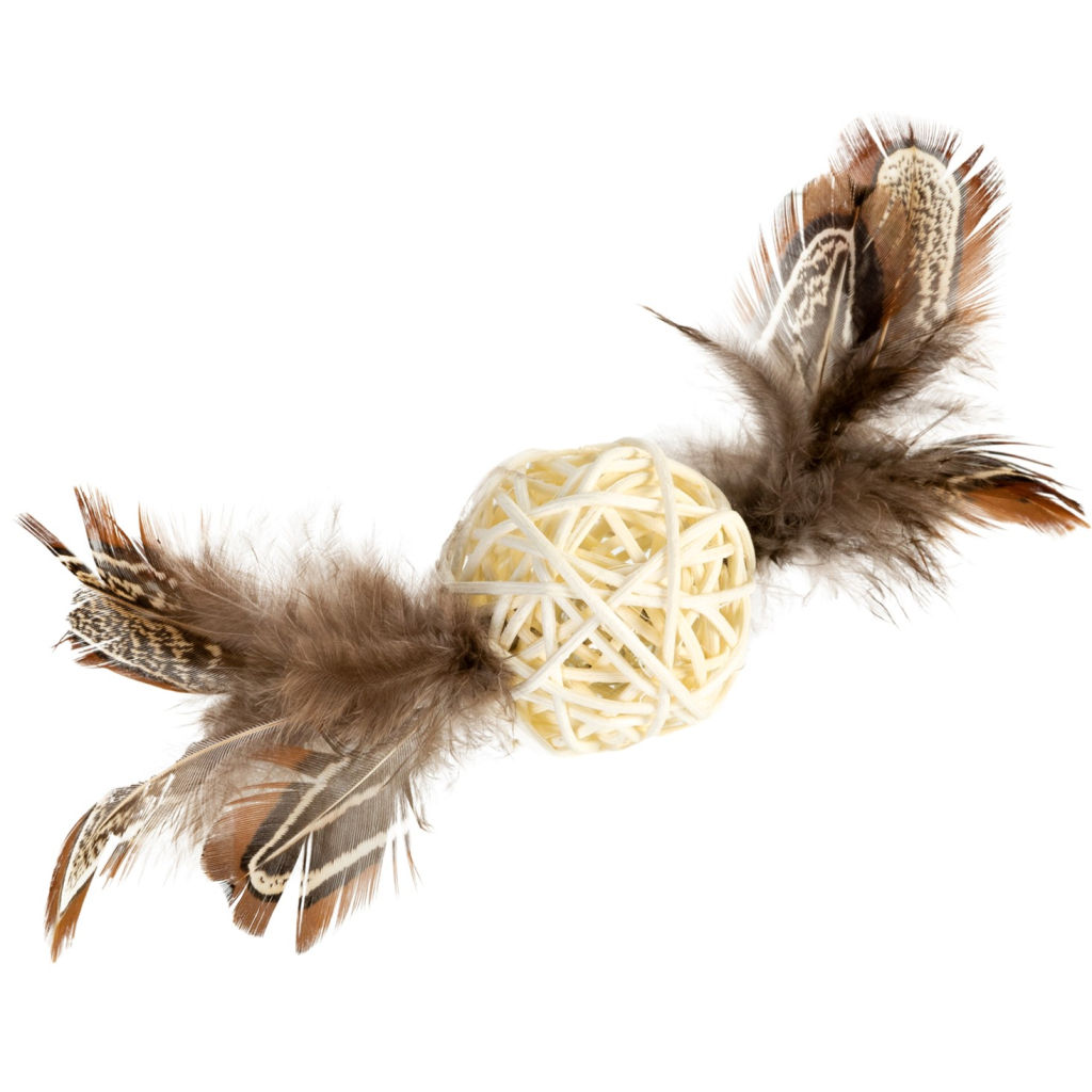 Іграшка для котів GiGwi Catch&scratch Плетений м'ячик з дзвіночком і пір'ям 13 см (75047)