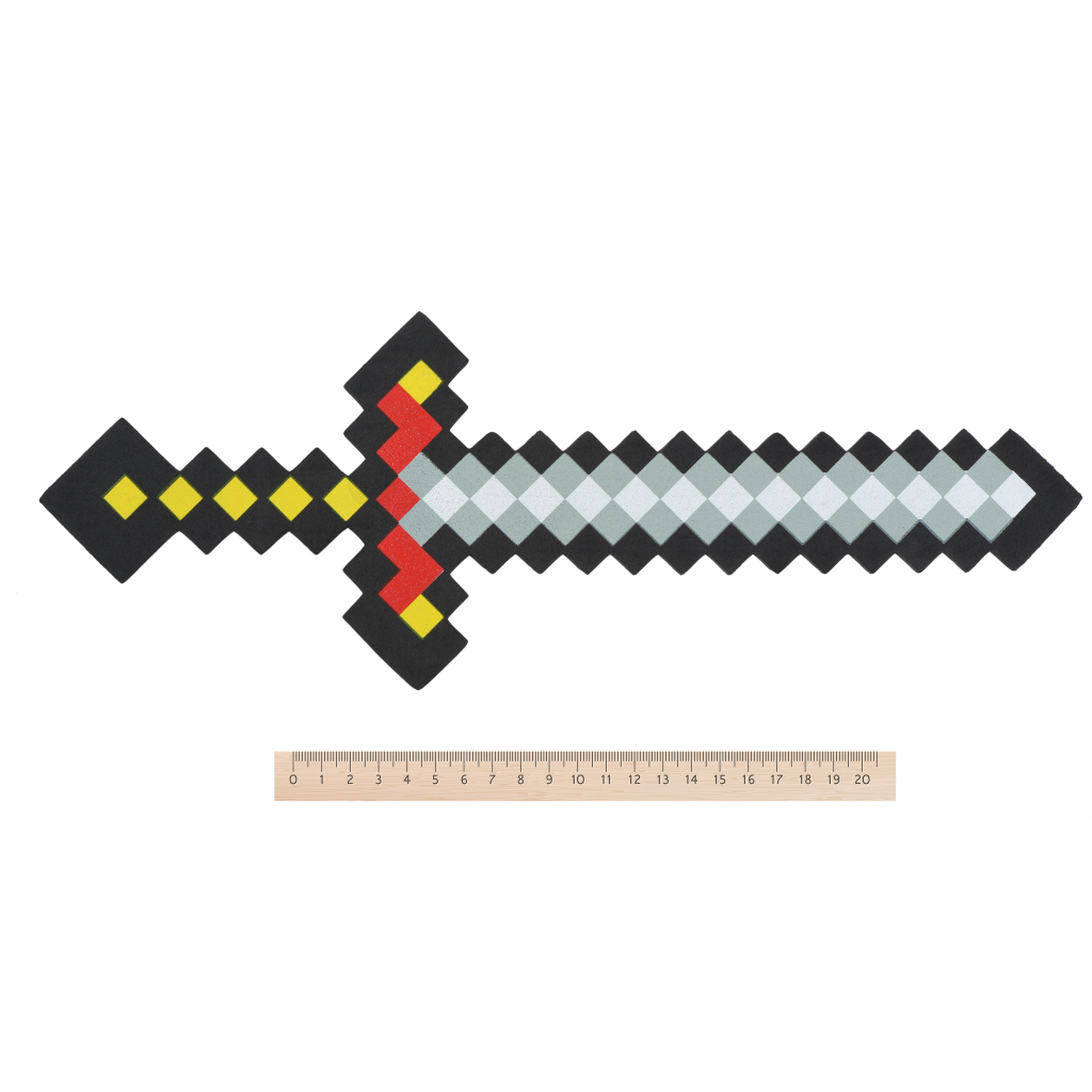 Іграшковий меч – важливий атрибут для захопливих ігор. Іграшка виготовлена у стилі ігор «Майнкрафт». Меч абсолютно безпечний, не здатен заподіяти шкоди; виготовлений зі спіненого поліпропілену. Матеріал, м’який, але достатньо цупкий і тримає форму. Іграшка завдовжки 38 см, ширина хрестовини – 13,5 см. Іграшковий меч для дітей від 3 років.