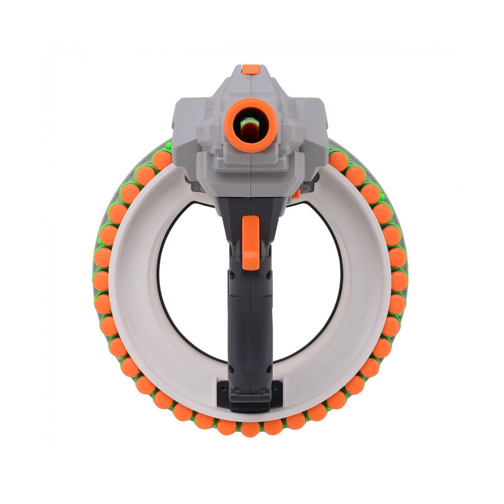Бластер Tack Pro Cyclone Auto допоможе у будь-якому бойовому протистоянні. Дроти легко і швидко дозволять перезарядити зброю для випуску заряду в кілька патронів чергою. Спеціальна конструкція забезпечить надійну фіксацію руки на ручці завдяки круглому барабану. Бластер має унікальний дизайн для можливості ігор у будь-якій місцевості та комфортного транспортування. Збирайте всіх друзів для відточування влучності, швидкості та спритності.