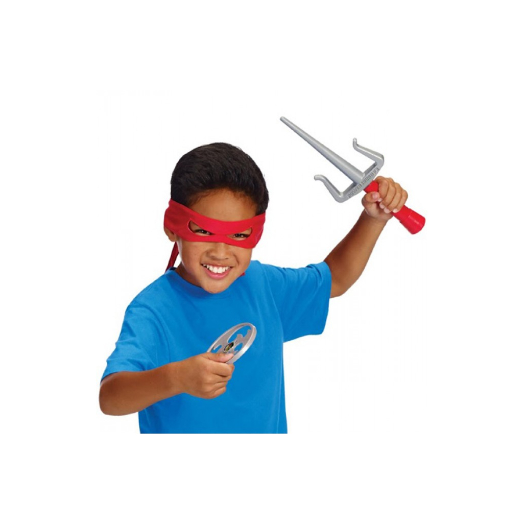 Іграшкова зброя TMNT Черепашки-Ніндзя Рафаель (92104) являє собою нову, набагато поліпшену лінійку давно відомого нам спорядження черепашок! Тепер бойове спорядження - озвучене! В набір входить унікальний озвучений меч - саї, який буде видавати різні бойові фрази та звуки під час махів та інших рухів. Крім меча, в набір включено характерну маску Рафаеля - червоного кольору, а також сюрікени. Батарейки: 3 шт. LR44 (є в наборі).