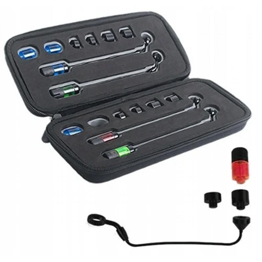 Механічні сигналізатори клювання Prologic SNZ Bite Indicator - серія невеликих, але функціональних хангерів і свінгерів, які задовольнять потреби навіть найвимогливіших рибалок. У серії представлені свінгери - з жорсткою зчіпкою, а також хангери з гнучким з'єднанням. Продаються наборами на 3 та 4 вудилища або по-окремо в червоному, жовтому, синьому, зеленому та білому кольорах. У комплект входять змінні грузила для регулювання сили натягу.
