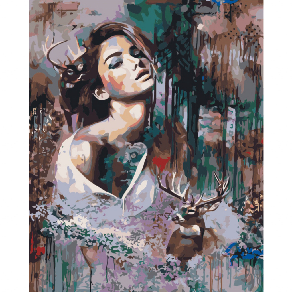 Картина по номерам Strateg Дівчина з оленями 40х50 см VA-0061 (4820220566140)