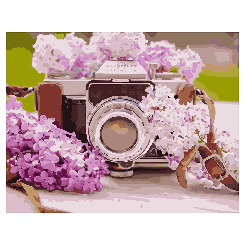 Картина по номерам Strateg Фотоапарат з бузком VA-1080 40х50 см (4820220564153)