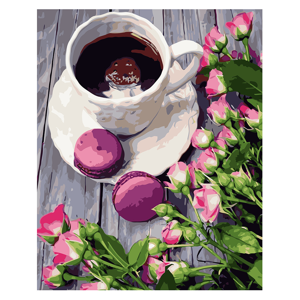 Картина по номерам Strateg Кава з макарунами 40х50 см VA-0780