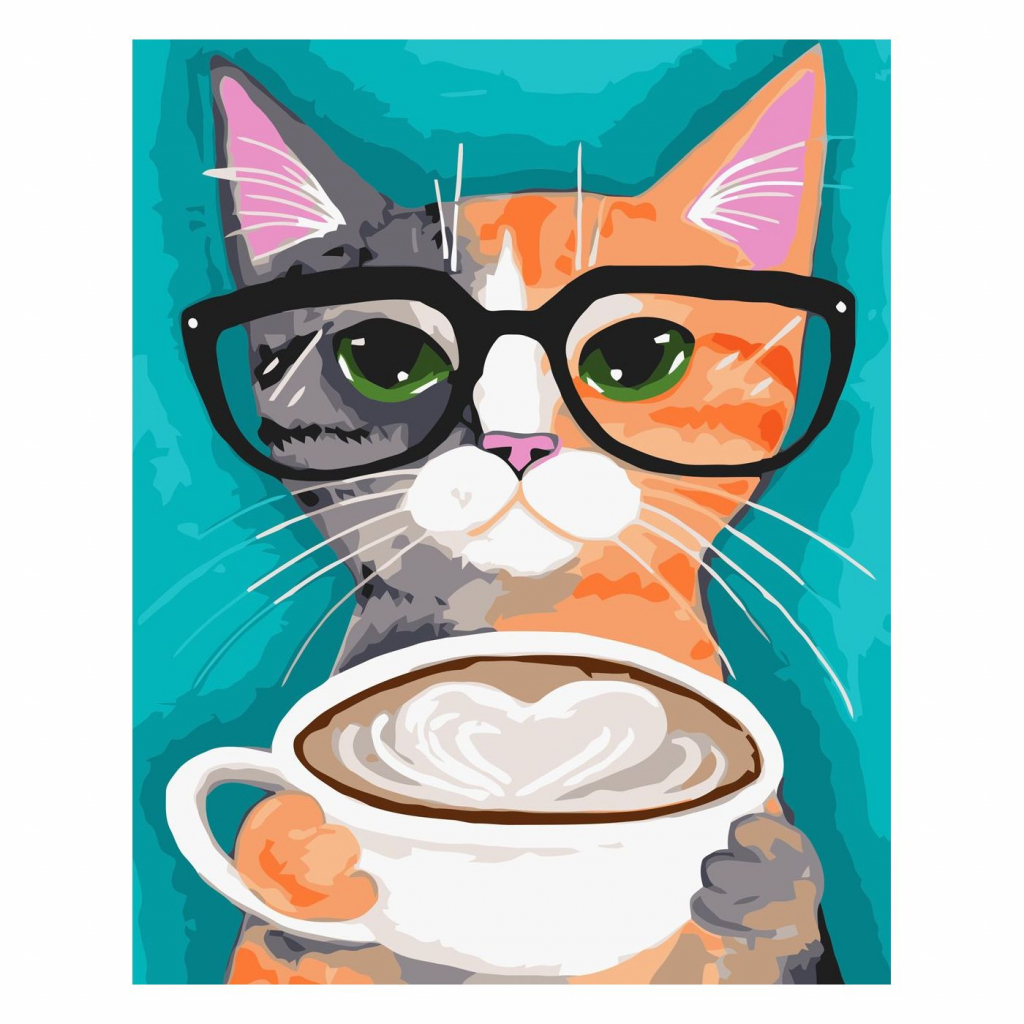 Картина по номерам Strateg Кіт в окулярах з кавою 30х40 см (SV-0054)