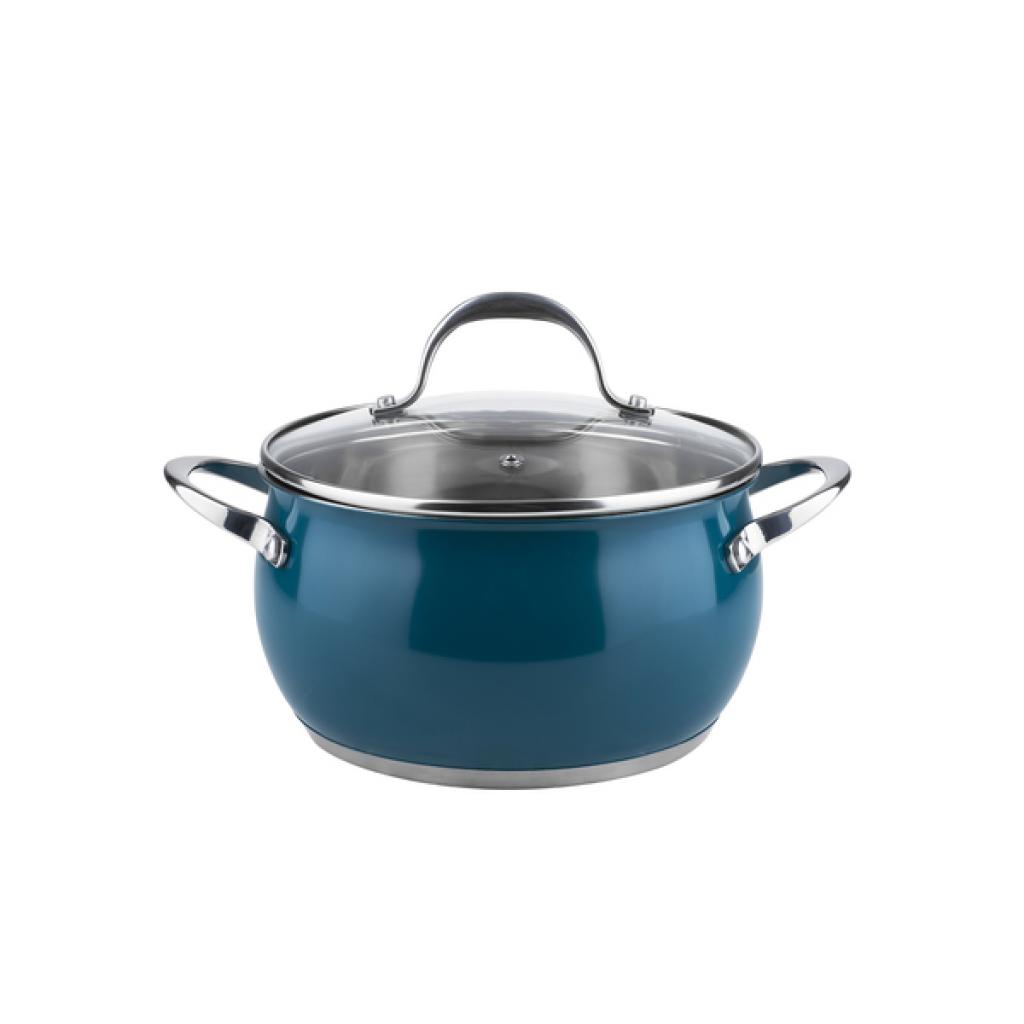 Колекція посуду Bavaria, виконана з високоякісної нержавіючої сталі, безпека якої підтверджена європейськими сертифікатами, з товщиною стінок 0.5 мм. Дана лінійка відрізняється зовнішнім емальованим покриттям жовтого і бірюзового кольору і матовим внутрішнім поліруванням.